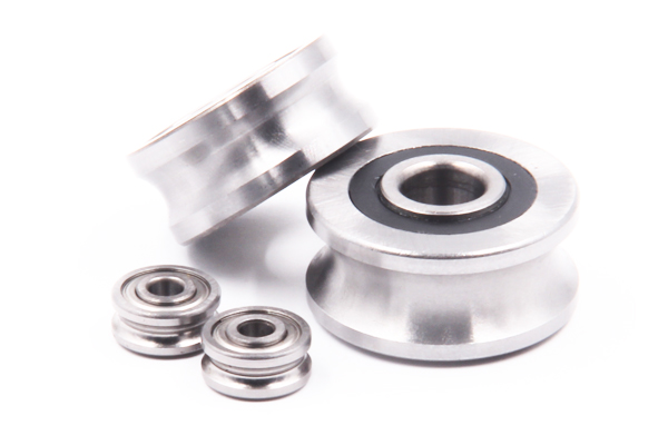 Miniature ball bearings with flanged outer rings.
